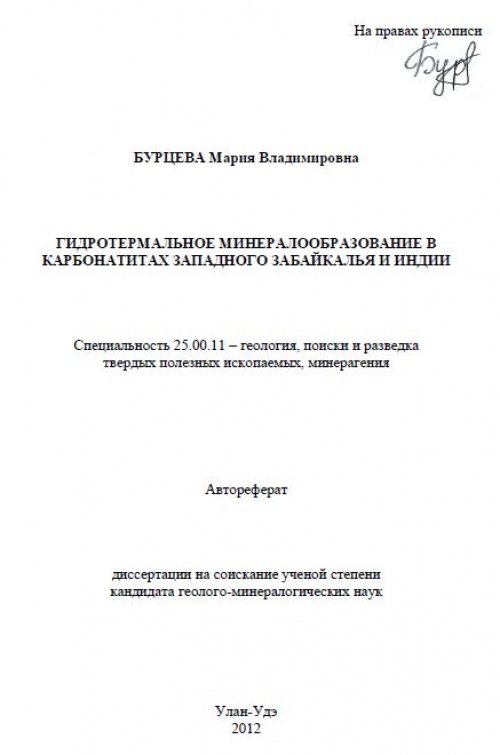 Гидротермальное минералообразование в карбонатитах Западного Забайкалья и Индии