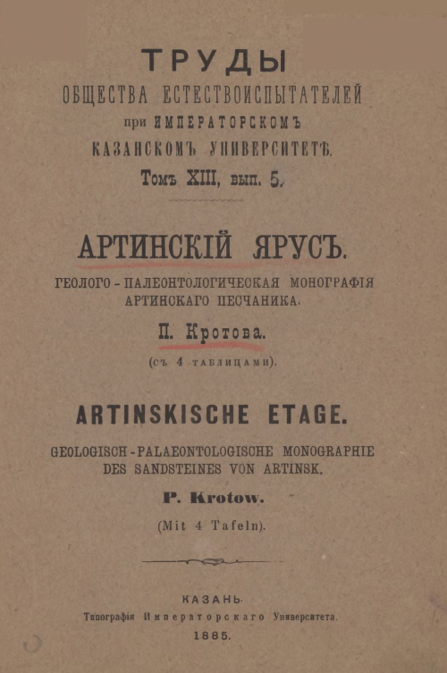 Труды Общества Естествоиспытателей при Императорском Казанском Университете. Том 13. Выпуск 5. Артинский ярус. Геолого-палеонтологическая монография Артинского песчаника