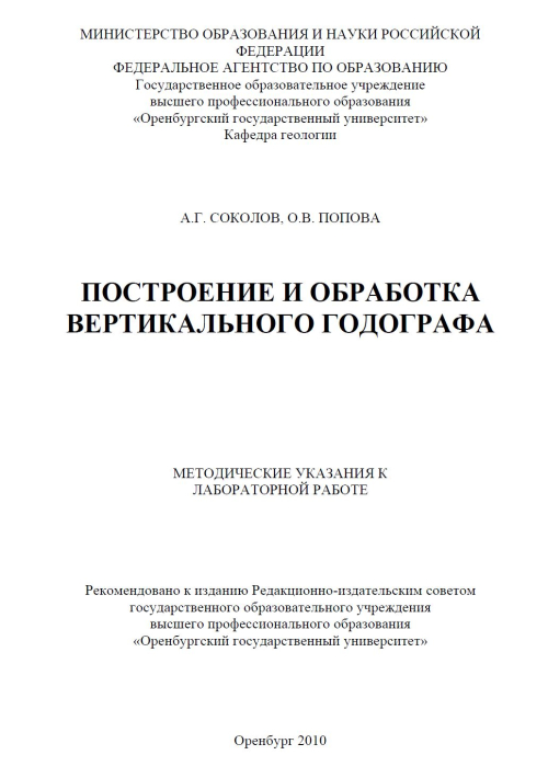 Методические указания предназначены для выполнения лабораторной работы по дисциплинам: «Полевая геофизика» специальности 130304 «Геология нефти и газа» и «Геофизические методы поисков и разведки месторождений полезных ископаемых» специальности 130301 «Геологическая съемка, поиски и разведка месторождений полезных ископаемых», для студентов 3-4 курса геолого-географического факультета. Методические указания состоят из трех разделов: «Теоретических сведениях», «Практической части» и «Приложений».