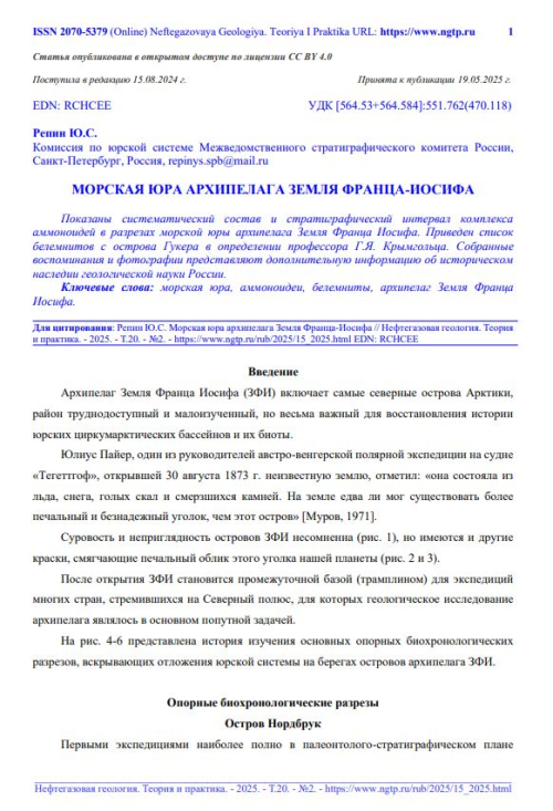 Архипелаг Земля Франца Иосифа (ЗФИ) включает самые северные острова Арктики, район труднодоступный и малоизученный, но весьма важный для восстановления истории юрских циркумарктических бассейнов и их биоты.