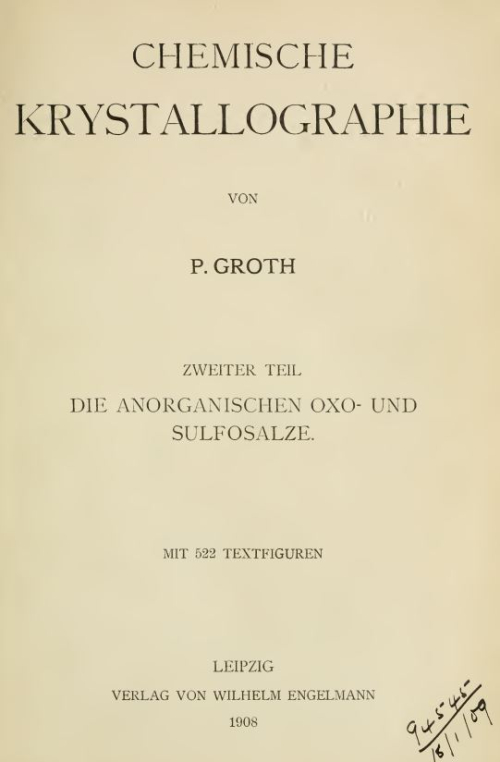Chemische krystallographie. Zweiter teil. Die anorganishcen oxo- und sulfosalze / Химическая кристаллография. Вторая часть. Неорганические оксо- и сульфосоли