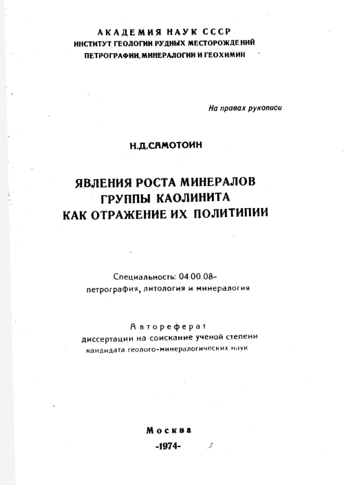 Явления роста минералов группы каолинита как отражение их политипии