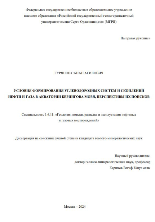 Условия формирования углеводородных систем и скоплений нефти и газа в акватории Берингова моря, перспективы их поисков