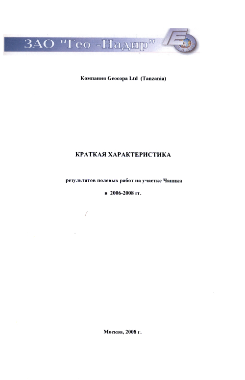 Краткая характеристика результатов полевых работ на участке Чаника в 2006-2008 гг.