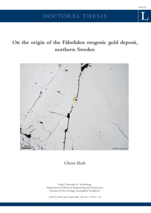 A new promising ore province, the Gold Line, southwest of the well-known Skellefte District, northern Sweden, is currently under exploration. This province hosts, so far, one operating mine, the Svartliden Au mine, and the recently closed Blaiken Zn-Pb-Au-Ag mine. The largest known gold deposit, the hypozonal Fäboliden orogenic gold deposit, in the area was recently granted mining permits. The deposit holds c. 54 Mt at 1.2 g/t Au, with a planned production of 4.6 Mt of ore/year. The mineralization at Fäboliden is commonly hosted in arsenopyrite-bearing quartz-veins, within a roughly N-S striking, steeply dipping shear zone in amphibolite facies volcanosedimentary host rocks. The narrow belt of supracrustal rocks is surrounded by late- to postorogenic Revsund granite. The gold is fine-grained (2–40 m) and closely associated with arsenopyrite-löllingite and stibnite. Gold is found in fractures and as inclusions in the arsenopyrite-löllingite. Gold is also seen as free grains in the silicate matrix of the host rock. The hydrothermal mineral assemblage in the proximal alteration zone is diopside, calcic amphibole, biotite, and minor andalusite and tourmaline. This type of assemblage is commonly recognized in hypozonal orogenic gold deposits worldwide. The lateral extent of the proximal alteration zone is estimated to 30–50 meters, and there is a good agreement between diopsideamphibole-biotite alteration, quartz veining, and gold mineralization. The mineral assemblage in the distal alteration zone is characterised by the presence of Ca- and Fe-Mg amphiboles, hedenbergite, biotite, and quartz. The transition from the distal alteration into the regional metamorphic assemblage is diffuse, and the only discernable feature appears to be a gradual decrease of amphibole away from the mineralization. <...>