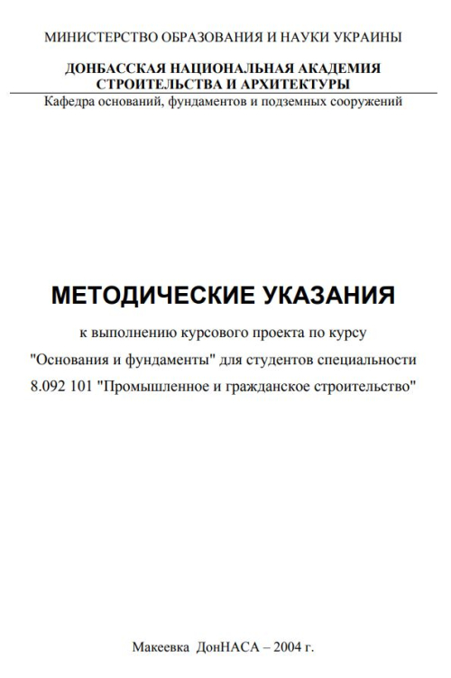 Методические указания к выполнению курсового проекта по курсу "Основания и фундаменты"