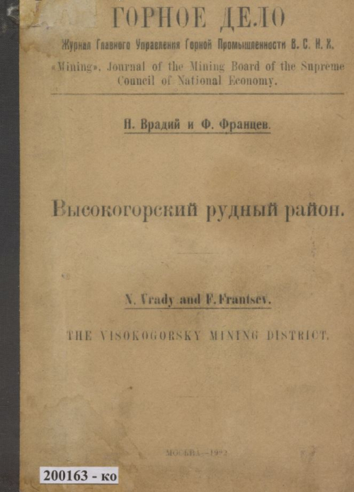 Настоящая статья имеет целью дать краткий справочник о состоянии Высокогорского рудного района на 1-с января 1921 г. В ней представлены главнейшие общие данные по всему району. Порядок содержания статьи принят следующий:
