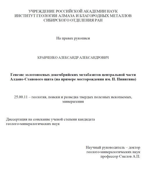 Генезис золотоносных докембрийских метабазитов центральной части Алдано-Станового щита (на примере месторождения им. П. Пинигина)