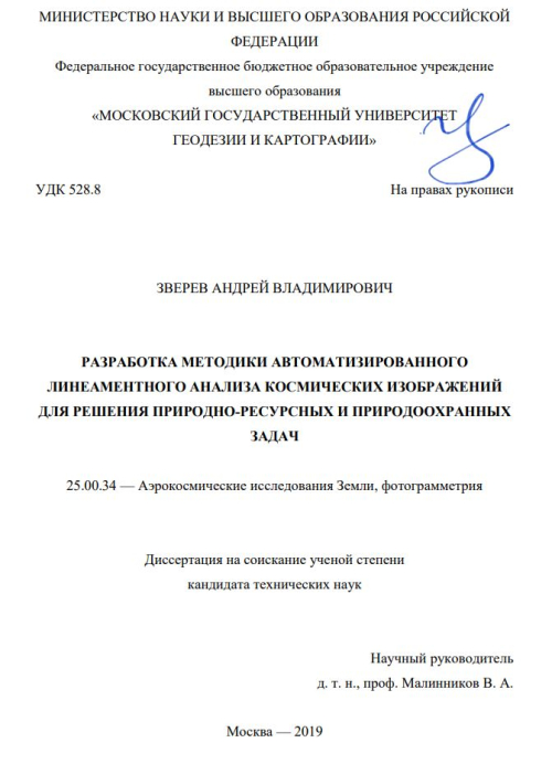 Разработка методики автоматизированного линеаментного анализа космических изображений для решения природно-ресурсных и природоохранных задач