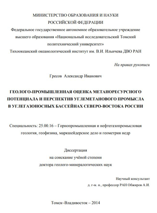 Геолого-промышленная оценка метаноресурсного потенциала и перспектив углеметанового промысла в углегазоносных бассейнах Северо-Востока России