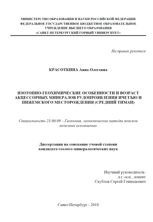 Изотопно-геохимические особенности и возраст акцессорных минералов рудопроявления Ичетью и Пижемского месторождения (Средний Тиман)