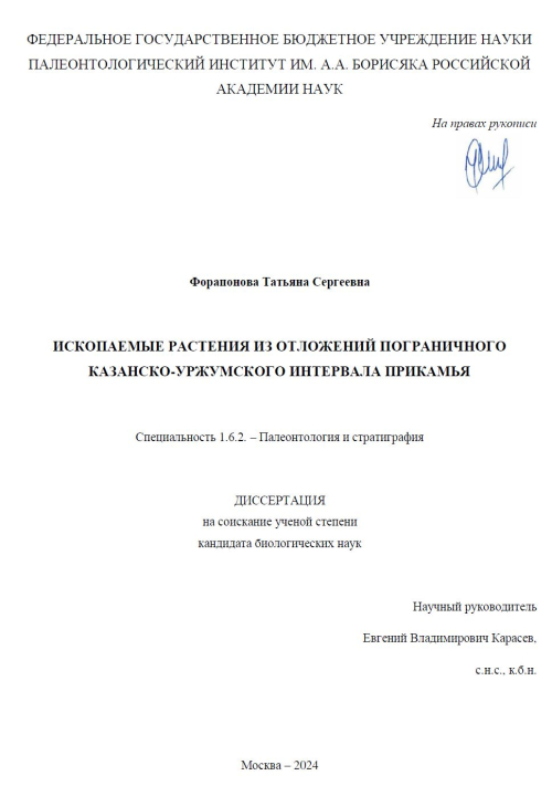 Ископаемые растения из отложений пограничного Казанско-Уржумского интервала Прикамья