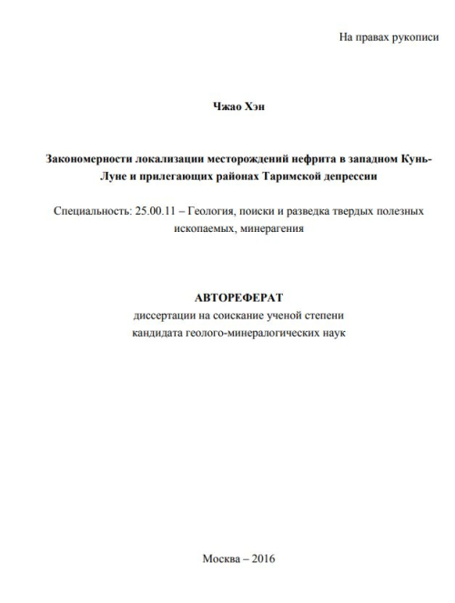 Актуальность проблемы. Нефрит является высоколиквидным сырьем и особенно ценится в Китае и других странах. На северо-западе Китая в западной части Таримской депрессии и в прилегающих горах Центрального Кунь-Луня известны многочисленные коренные и россыпные месторождения нефрита. К началу XX в. они вместе с коренными месторождениями нефрита описаны по рекам Яркенд, Тизнаб, Дува, Кара-Каш, Юрун-Кащ, Чира, Керия и др. Качество сырья из этого района и нефритовые изделия описаны в монографии китайских исследователей Ли Мина и Донг Хунцюаня, изданной на китайском языке в 2012 г. Эти авторы отмечают, что месторождения нефрита значительно истощены и многие из них выработаны.