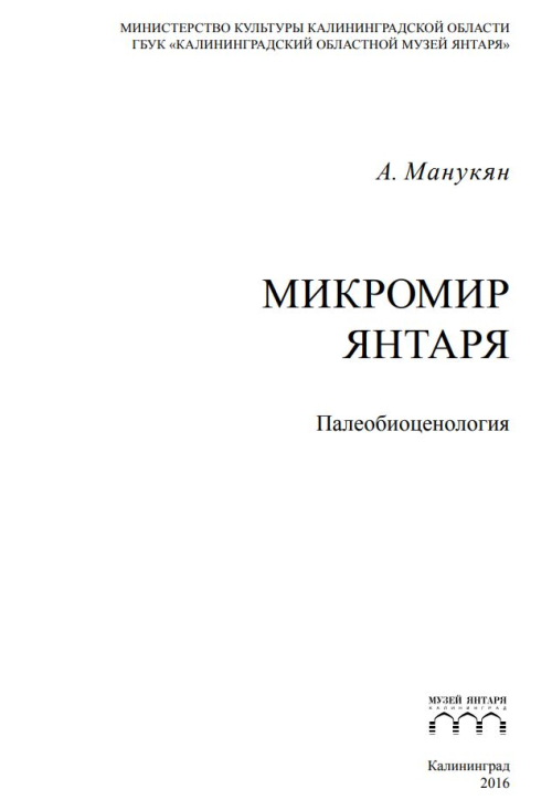 «Янтарное» сообщество описано как целостный организм, где каждому его члену отведена определенная роль в круговороте веществ и энергии. В качестве ведущего биологического звена рассмотрен продуцент балтийского янтаря. Дан краткий очерк истории изучения биологических включений в балтийском янтаре. Автор – Андраник Манукян, кандидат биологических наук, старший научный сотрудник Калининградского областного музея янтаря. Занимается систематикой перепончатокрылых насекомых (Hymenoptera, Ichneumonidae), а также вопросами биологического и таксономического разнообразия включений насекомых в балтийском янтаре. <...>