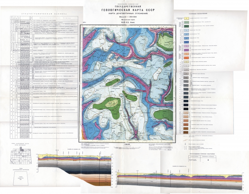 O-37-XX (Кашин). Государственная геологическая карта СССР. Карта дочетвертичных отложений. Московская серия