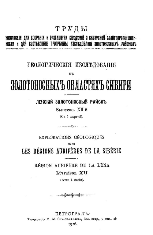 В ближайшем соседстве с старинным Константин овским прииском, расположенным в долине рч. Угахана в так наз. Олекминской системе золотых приисков Иркутской губернии, уже давно, сначала Н. Козьминым а потом В.А. Обручевым'*), были отмечены обильные осыпи гранитных пород как по самому Угахану, так и по его левому притоку- Шмотинскому ключу. Во время более подробных исследований в 1900 и 1902 годах мне удалось установить, что здесь на так наз. Гранитной горе мы действительно имеем коренные выходы глубинных пород, представляющих такую огромную редкость в центральных, приисковых, частях Олекминско-Витимской тайги. <...>