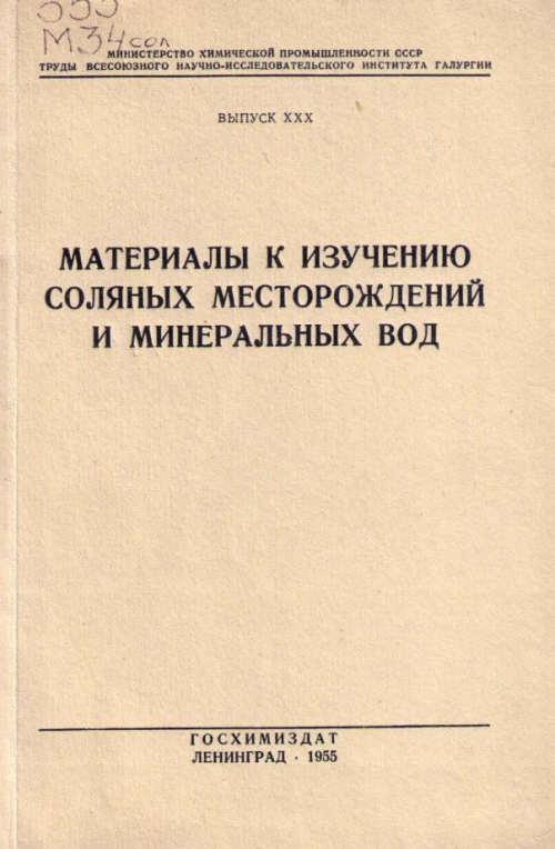 Труды ВНИИГ. Выпуск 30. Материалы к изучению соляных месторождений и минеральных вод