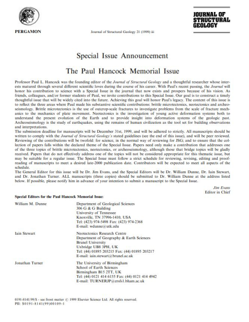 It is increasingly apparent that faults are typically not discrete planes but zones of deformed rock with a complex internal structure and three-dimensional geometry. In the last decade this has led to renewed interest in the consequences of this complexity for modelling the impact of fault zones on fluid flow and mechanical behaviour of the Earth’s crust. A number of processes operate during the development of fault zones, both internally and in the surrounding host rock, which may encourage or inhibit continuing fault zone growth. The complexity of the evolution of a faulted system requires changes in the rheological properties of both the fault zone and the surrounding host rock volume, both of which impact on how the fault zone evolves with increasing displacement.
