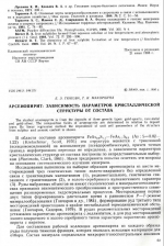 В области составов арсенопирита FeAs0.9S1.1—FeAs1.1S0.9 (As : S=0.82— 1.22) (Kretschmar, Scott, 1976) его структура меняется с триклинной (псевдомоноклинной) на моноклинную (псевдоромбическую), причем точная граница морфотропного перехода не определена, а зависимости параметров кристаллических структур от состава построены по непредставительным выборкам (Morimoto, Clark, 1961). Нами предпринята попытка осветить эти вопросы на основании систематического изучения минерала.