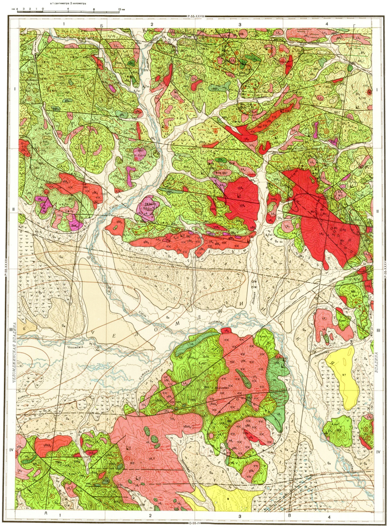 P-55-XXXIV. Геологическая карта СССР. Геологическая карта и карта полезных ископаемых дочетвертичных образований. Магаданская серия