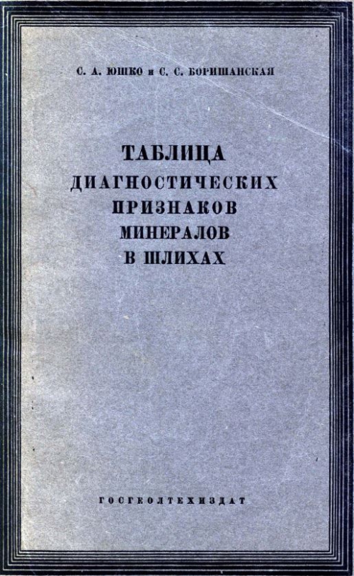 В работе приведена общая схема шлихового анализа и дано описание ситового анализа, метода отбора средней пробы, магнитной и электромагнитной сепарации и разделения шлиха тяжелыми жидкостями и сплавами. Приведено подробное описание наиболее простых химических реакций (главным образом капельных), применяющихся для определения шлиховых минералов. Для определения минералов, выделенных в результате предварительной подготовки шлиха к анализу, приведены таблицы, содержащие детальную характеристику шлиховых минералов. Инструкция является кратким систематическим определителем шлиховых материалов и может быть использована всеми, занимающимися изучением шлихов.