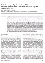 Field, petrographic, microstructural and isotopic studies of mylonitic gneisses and associated pegmatites along the Hope Valley shear zone in southern Rhode Island indicate that late Palaeozoic deformation (c. 275 Ma)in this zone occurred at very high temperatures (>650 C). High-energy cuspate ⁄ lobate phase boundary microstructures, a predominance of equant to sub-equant grains with low internal lattice strain, and mixed phase distributions indicate that diffusion creep was an important and possibly predominant deformation mechanism. Field and petrographic evidence are consistent with the presence of an intergranular melt phase during deformation, some of which collected into syntectonic pegmatites. Rb ⁄ Sr isotopic analyses of tightly sampled pegmatites and wall rocks confirm that the pegmatites were derived as partial melts of the immediately adjacent, isotopically heterogeneous mylonitic gneisses. The presence of syntectonic interstitial melts is inferred to have permitted a switch from dislocation creep to melt-enhanced diffusion creep as the dominant mechanism in these relatively coarse-grained mylonitic gneisses (200–500 lm syn-deformational grain size). A switch to diffusion creep would lead to significant weakening, and may explain why the Hope Valley shear zone evolved into a major regional tectonic boundary. This work identifies conditions under which diffusion creep operates in naturally deformed granitic rocks and illuminates the deformation processes involved in the development of a tectonic boundary between two distinct Late Proterozoic (Avalonian)basement terranes.