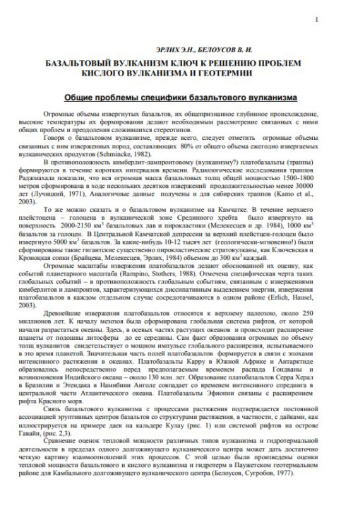 Базальтовый вулканизм ключ к решению проблем кислого вулканизма и геотермии