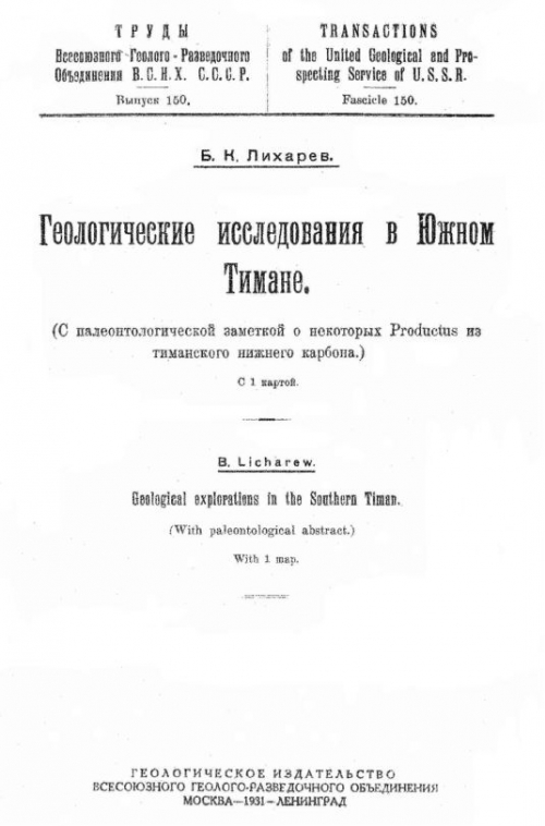 Летом 1929 г. я производил геологические исследования в бассейне рек Верхней Вычегды и Ижмы. Мои предшественники в деле изучения этого края были немногочисленны: в 1843 г. здесь побывал А. Кейзерлинг, поднявшийся по р. Вычегде от с. Пожегодского до устья р. Воль и вверх по этой последней на протяжении около 90 км. Он констатировал присутствие здесь выхода „черных глинистых сланцев" (метаморфических, по современной терминологии) и довольно широкое развитие каменноугольного и девонского известняков; обнажения пермских пород наблюдались им на р. Вычегде и в нижнем течении ее правого притока — на р. Помоз.