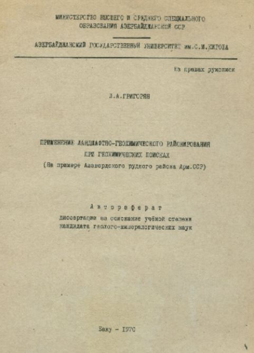 Несмотря на то, что Аллавердское медное месторождение в довоенные годы было одним из крупнейших по производительности в России имеет за собой более чем столетнюю историю и неоднократно посещалось и осматривалось геологами и инженерами, для него до сих пор не имелось детальной геологической съемки. Составление такой геологической карты в достаточно крупном масштабе и являлось главной задачей работы. Однако, при первой поездке на место в 1924 г. выяснилось, что на руднике не имелось даже удовлетворительной топографической съемки поверхности, и поэтому тогда пришлось ограничиться предварительным ознакомлением с геологическим строением окрестностей рудника, пользуясь для нанесения наблюдений очень плохим межевым планом (200 саж. в 1 дм.) с рельефом, показанным весьма приблизительно, сбором пород и образцов руды из отвалов почти совершенно недоступных тогда выработок рудника и копировкой обширного планового материала по отдельным горизонтам рудника. <...>