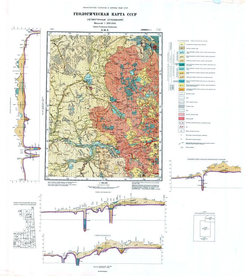 O-36-X. Государственная геологическая карта СССР. Карта четвертичных образований. Серия Тихвинско-Онежская