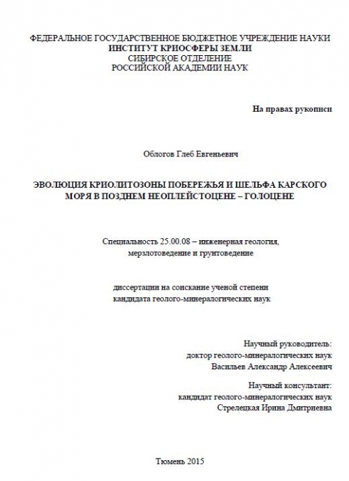 Криолитозона шельфа и континентального обрамления морей Российской Арктики, включая Карское море, изучена недостаточно. При этом в последние 10-15 лет исследования закономерностей формирования, эволюции, оценки современного состояния и потенциальных изменений криолитозоны выдвинулись в первый ряд в связи с выявлением важной роли шельфовой и прибрежной криолитозоны в формировании климата Арктики и природной обстановки в целом (Васильев, Рекант, 2011; Григорьев др., 2006; Shakhova et al., 2010; Stein, et al., 2002 и др.). Взаимодействие моря и суши в Арктике определяет основные тренды эволюции криолитозоны, как важнейшего компонента природной среды, оказывает прямое влияние на потоки парниковых газов, формирование арктического климата и природной среды Арктики в целом.