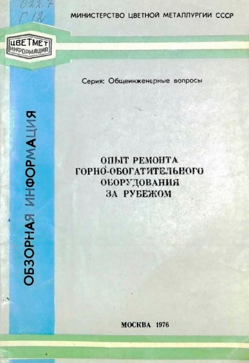 Обзор предназначен для работников ремонтно-механических служб предприятий цветной металлургии и других отраслей промышленности