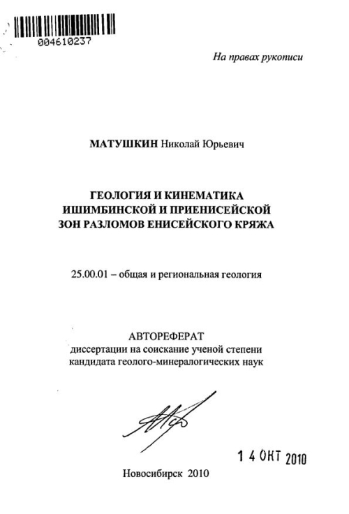 МеткиАвтореферат, Енисейский кряж, Ишимбинская зона, Приенисейская зона, Центрально-Азиатский складчатый пояс