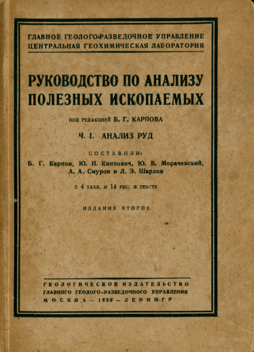 Настоящее издание составлено исключительно для пользования наших полевых лабораторий, сопровождающих разведывательные партии. По большей части лаборатории эти, несмотря на свое название «полевых»,, имеют характер стационарный и более или менее сносное помещение, а иногда и оборудованное помещение -при ^заводе. Поэтому в задачи наших нолевых лабораторий могли входить и довольно сложные количественные определения.