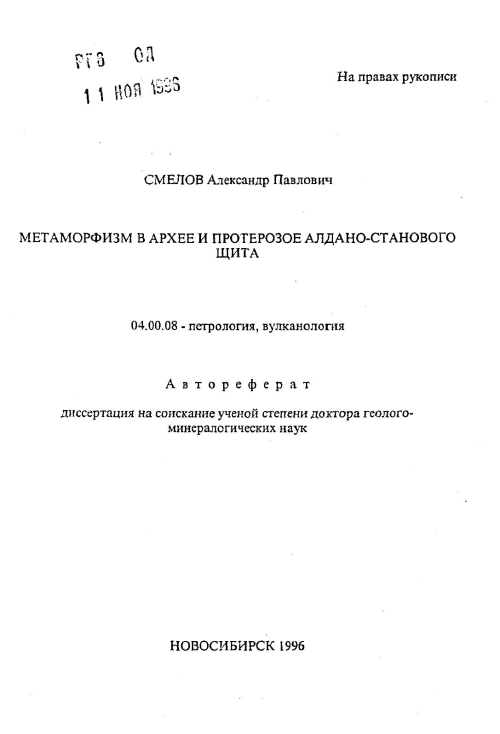 Метаморфизм в архее и протерозое Алдано-Станового щита