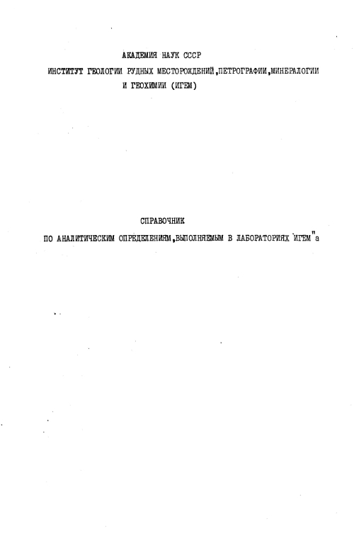Справочник подготовлен по решению дирекции ИГЕМ АН временной аналитической комиссией - зав. центральной химической лабораторией докт. геол.-мин. наук И.Д,Борнеман-Старынкевич, зав,рентгено-химической лабораторией канд, физ.-мат.наук К.И.Нарбуттом, зав. лабораторией спектрального анализа канд. технич. наук В.Г.Дитровьш председатель комиссии).