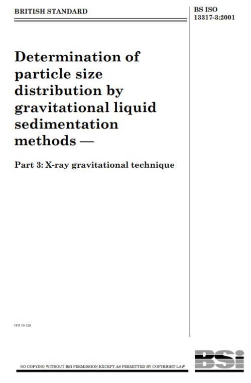 This part of ISO 13317 describes a method for the determination of the particle size distribution of a powder dispersed in a liquid using gravity sedimentation. The measurement of the concentration of solids settling in a liquid suspension is achieved by monitoring the incremental signal absorption from a beam of X-rays.