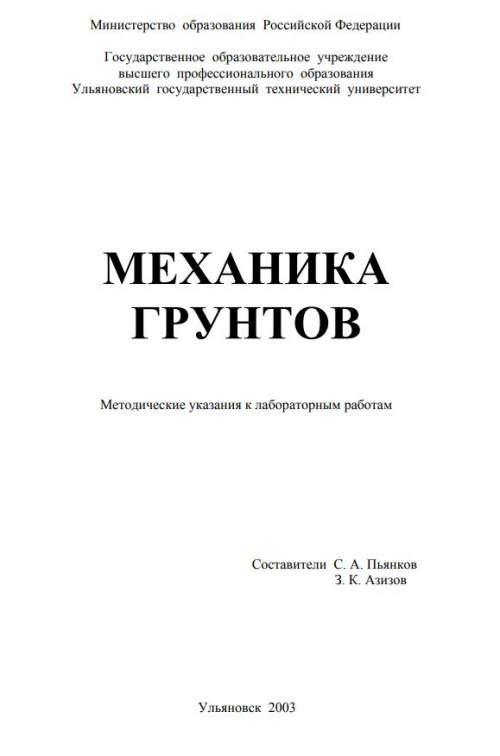 Настоящее пособие имеет целью ознакомление студентов и специалистов геологического (не технического) профиля с теоретическим обоснованием и основными приемами практического определения главнейших механических характеристик грунтов.