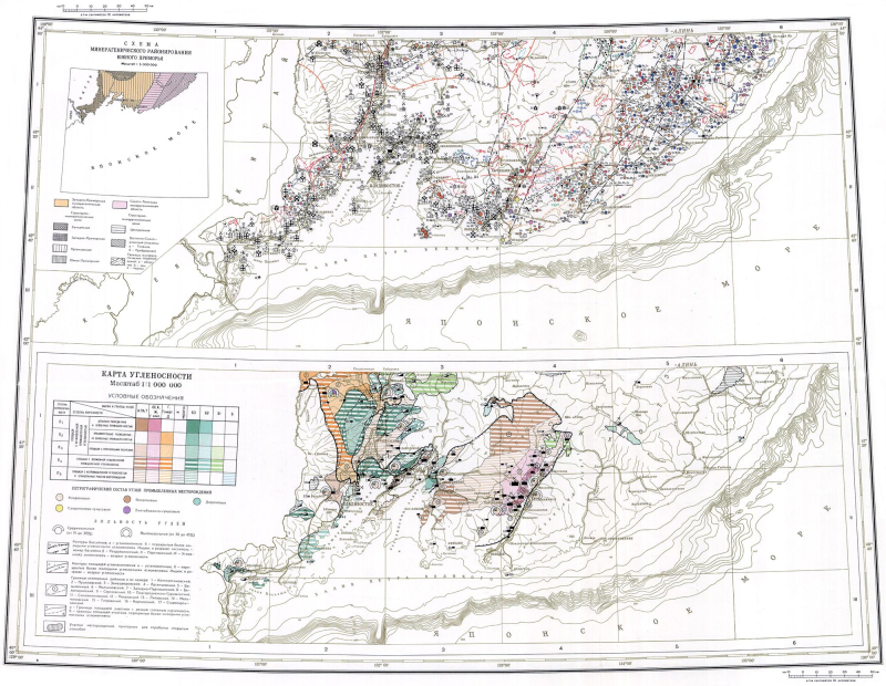K-(52);(53) (Владивосток). Государственная геологическая карта СССР. Карта полезных ископаемых и карта угленосности