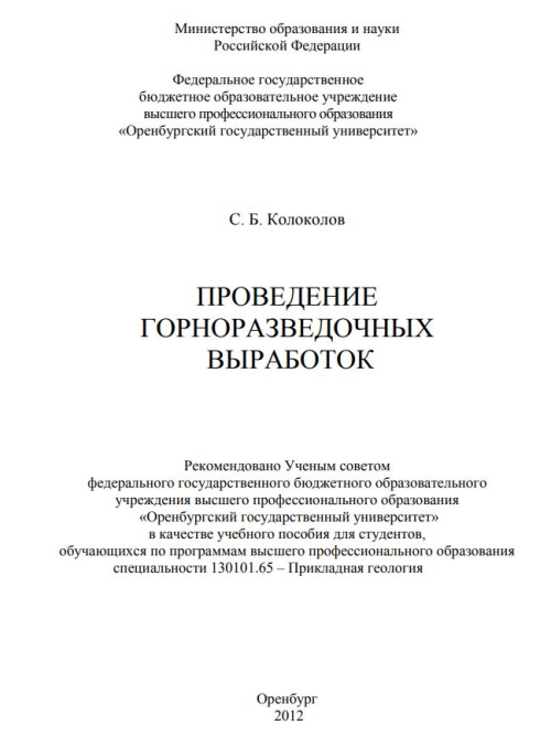 «Проходка горноразведочных выработок» является разделом общей дисциплины «Техника разведки», которая изучает технические средства и способы их применения в геологоразведочном деле. Данное методическое пособие, предназначено для студентов геологического факультета ВГУ, обучающихся по специальностям: 020301 -геология, 130301 - геологическая съемка, поиски и разведка месторождений полезных ископаемых. В пособии рассматриваются условия применения тех или иных технических средств на разных стадиях ведения геологоразведочных работ, классификация и назначение горных выработок, способы их проходки.