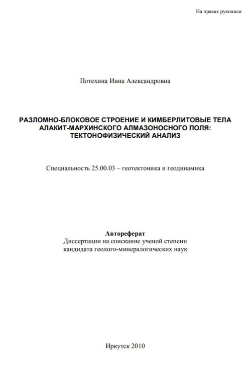 С момента открытия в Восточной Сибири первых якутских месторождений алмазов прошло более 60 лет, и, несмотря на открытие других алмазоносных провинций, основным районом алмазодобычи в России остается Якутская алмазоносная провинция (ЯАП). В границах провинции выделен ряд кимберлитовых полей, среди которых одним из наиболее продуктивных является Алакит-Мархинское кимберлитовое поле (АМКП), вмещающее 66 кимберлитовых трубок, даек и жил, в том числе 6 коренных месторождений алмазов. Здесь были выполнены огромные объемы геологоразведочных работ – от поисковых маршрутов и шлихового опробования водотоков до проходки шурфов и скважин. В период с 50-х годов XX века до настоящего времени на территории АМКП было пройдено более 45000 буровых и горных выработок, большая часть которых имела поисковые задачи.