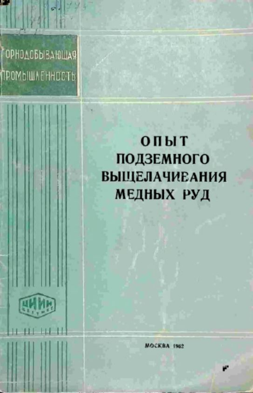 Настоящая работа является результатом обобщения материалов межреспубликанского семинара по подземному выщелачиванию меди на меднорудных предприятиях цветной металлургии. В работе приведены краткие данные о химизме процесса подземиого и кучного выщелачивания меди и о практике работы отдельных отечественных и зарубеж-ных цементационных установок. В брошюру включены рекомендации, разработанные участниками межреспубликанского семинара по обмену опытом выщелачивашія медных руд и одобренные Государственный комитетом Совета Министров СССР по координации научно-исследовательских работ и Центральный правлением НТО цветной металлургии.
