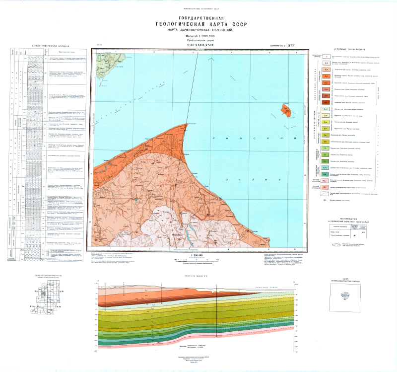 O-34-XXIII,XXIV. Государственная геологическая карта СССР. Карта дочетвертичных отложений. Прибалтийская серия
