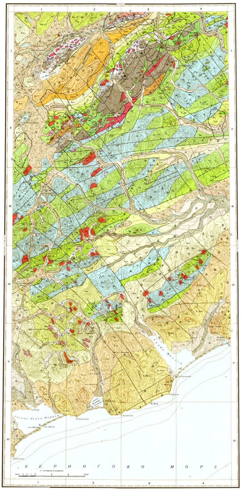 P-60-VII. Геологическая карта СССР. Геологическая карта и карта полезных ископаемых дочетвертичных образований. Корякская серия