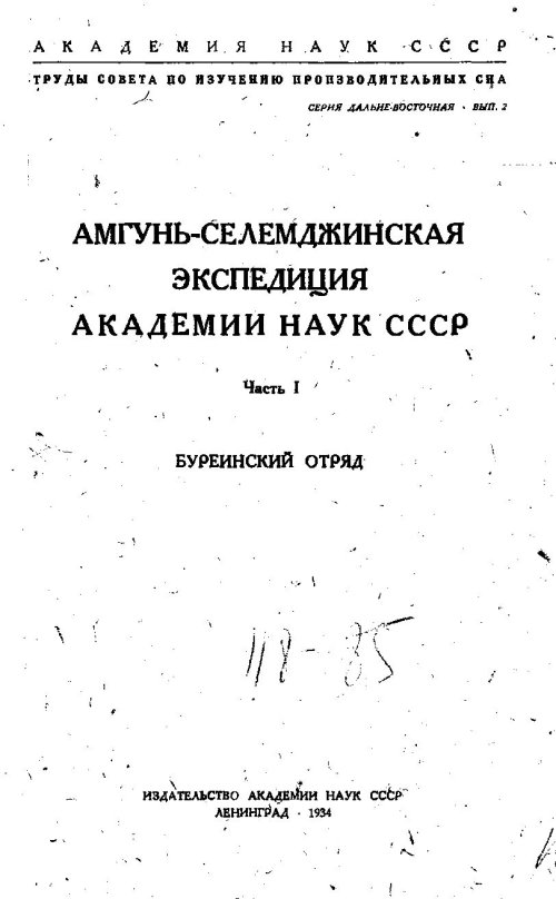 Амгунь-Селемджинская экспедиция Академии наук СССР. Часть 1. Буреинский отряд