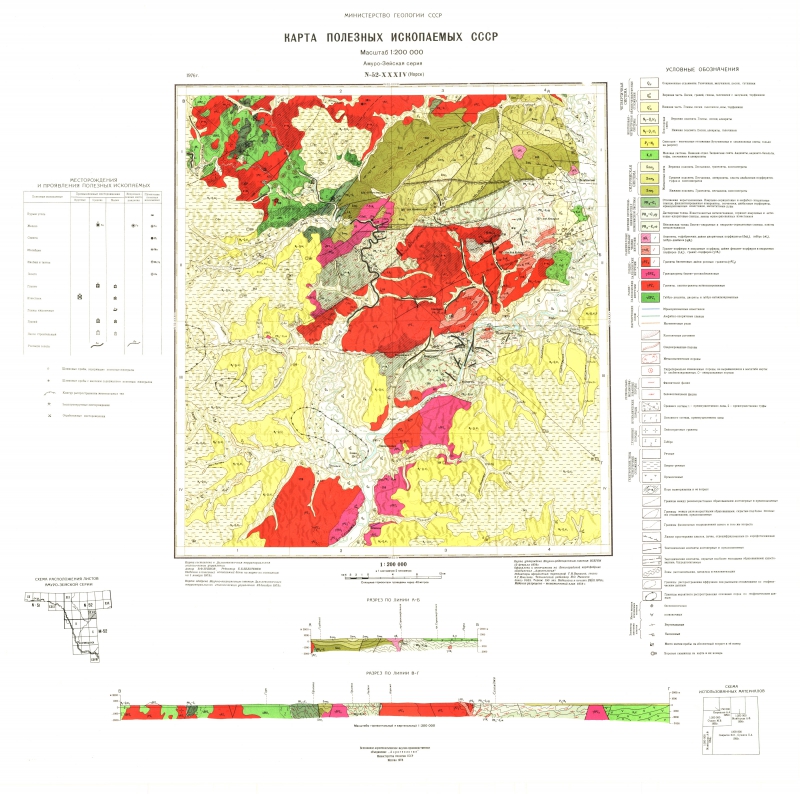 N-52-XXX (Стойба). Государственная геологическая карта Российской Федерации. Издание второе. Карта полезных ископаемых и закономерностей их размещения. Тугурская серия