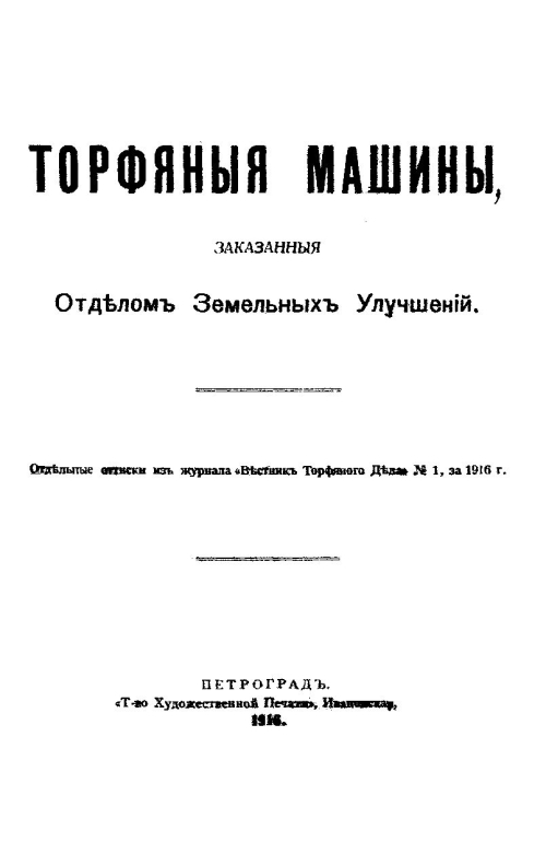 В настоящей работе описаны конструкции машин, применяемых в торфяной промышленности. Приведены их технические характеристики. Помещенные в работе статьи дают представление об основных научно-исследовательских работах по механизации добычи и переработки торфа.
