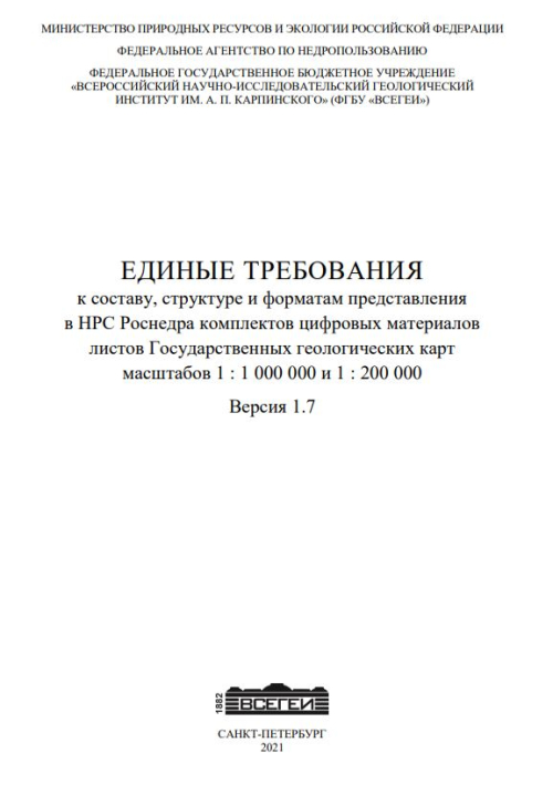 Единые требования к составу, структуре и форматам представления в НРС Роснедра комплектов цифровых материалов листов Государственных геологических карт масштабов 1 : 1 000 000 и 1 : 200 000. Версия 1.7