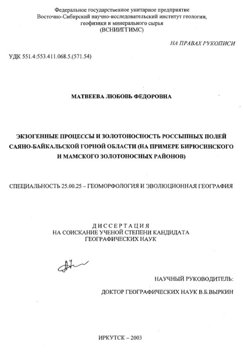 Актуальность темы определяется необходимостью изучения природных обстановок перемещения и дифференциации обломочного материала и металла под действием экзогенных агентов с целью определения механизма формирования россыпных месторождений различных генетических типов.