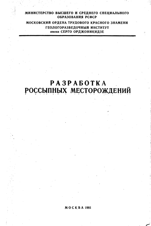 Сборник объединяет статьи, посвященные различным вопросам разработки россыпных месторождений — от обобщения практического опыта работы горных предприятий до характеристики результатов научных исследований в этой области горного дела. Статьи, помещенные в сборнике, затрагивают все способы разработки россыпей, в них рассматриваются особенности разработки с использованием мощных землеройных и землеройно-транспортных машин, рекомендуются мероприятия, направленные на повышение эффективности горных работ, приводятся результаты исследований по рекультивации земель и очистке промышленных стоков. Сборник рассчитан на инженерно-технических работников предприятий, проектных и научно-исследовательских организаций. Он также может быть полезен для студентов, обучающихся в вузах и техникумах страны по специальности «Технология и комплексная механизация разработки россыпных месторождений».